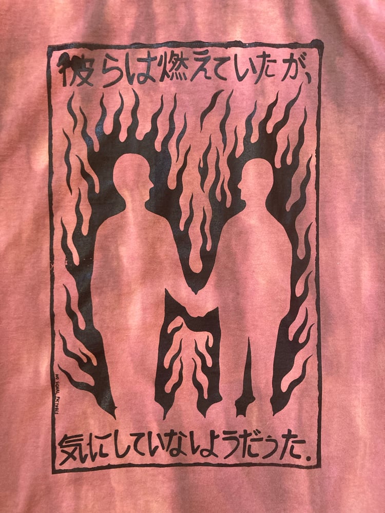 -This is a one-of-a-kind, preloved and upcycled brown vintage deadstock tee with a custom hand-screenprinted design that's been hand-leached as well.