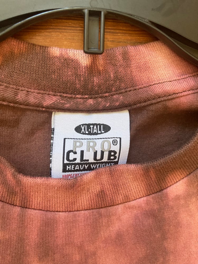 -Tee is a men's size XL-Tall Pro Club brand. Has a worn in and comfortable heavyweight feel.