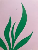 -green ink on pink paper