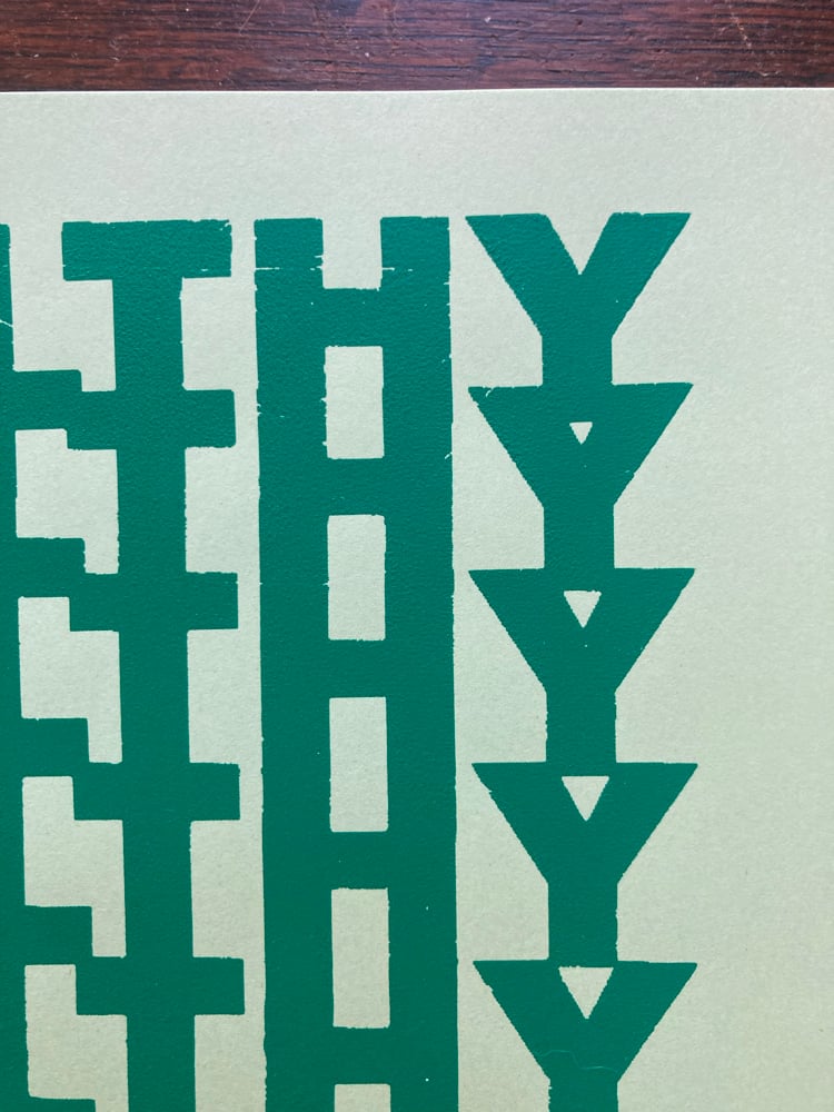 -Available in green on mint green paper or red on tan paper.