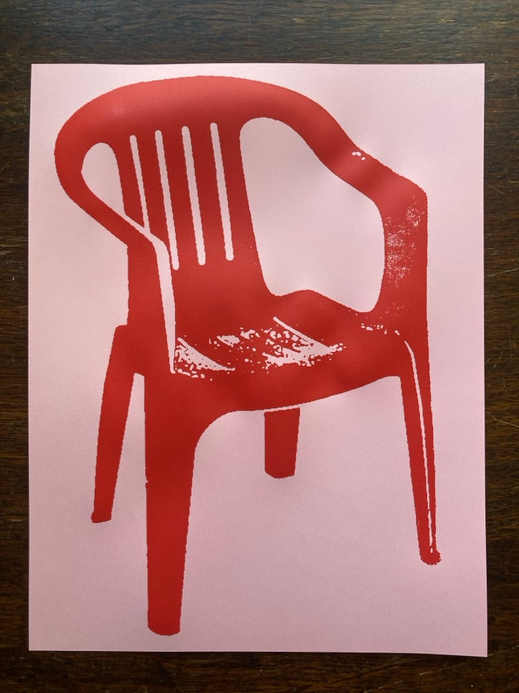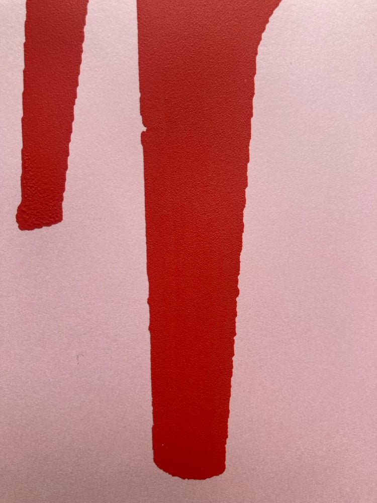 -Bright red ink on pink colored paper.