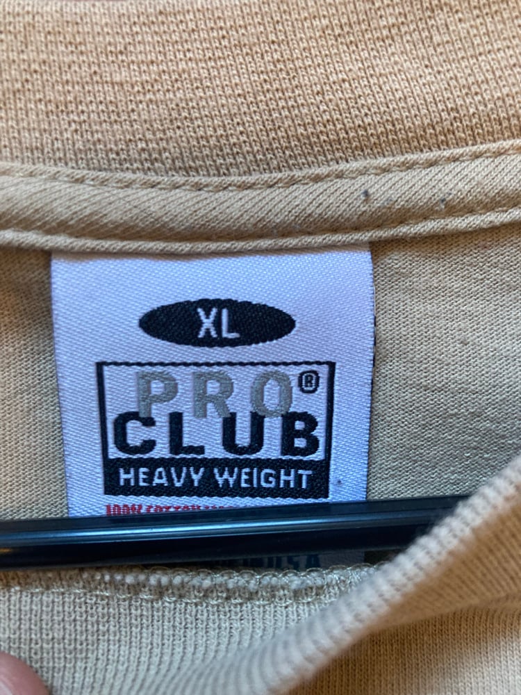 -Tee is a men's size XL Pro Club brand. Has a worn in and comfortable heavyweight feel.