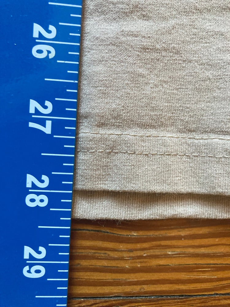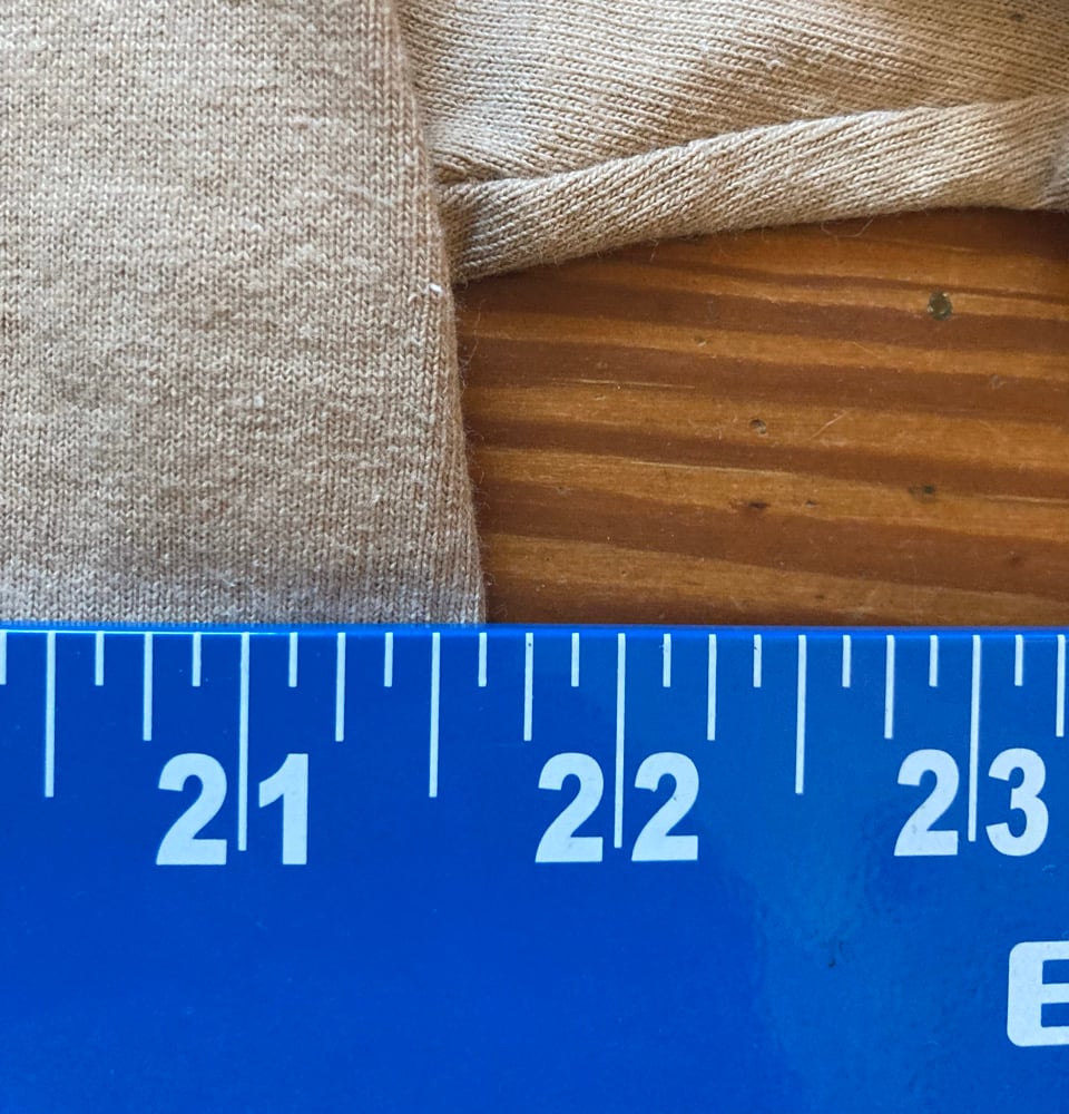 -Measurements are 21.5" pit to pit and 28" length.
